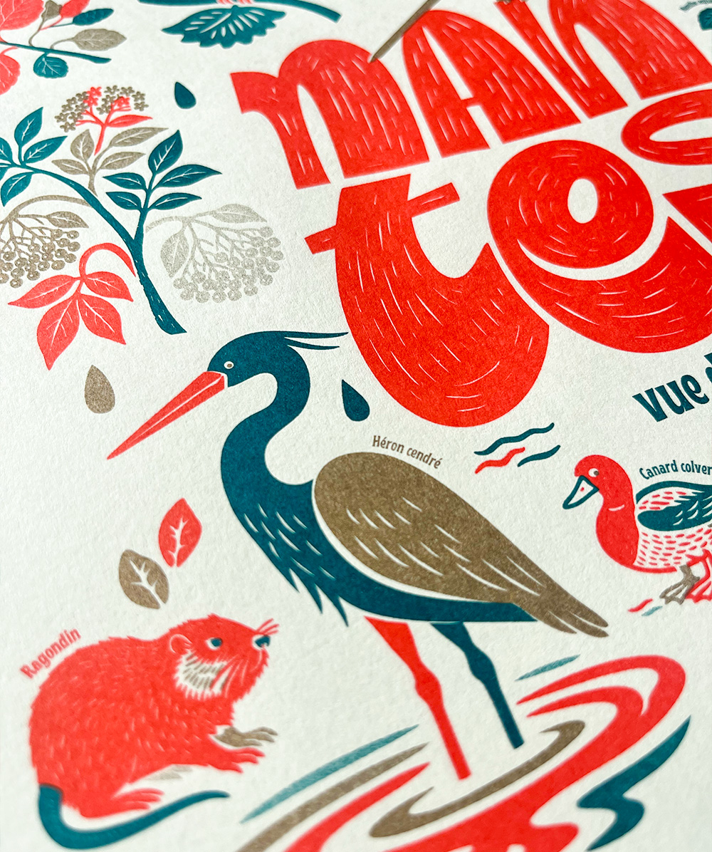 Procédé d’impression artisanal de qualité inégalable, la risographie utilise des encres végétales pour un rendu vibrant. De très légers décalages font de chaque tirage une pièce unique. Papier d’art Munken Pure Rough